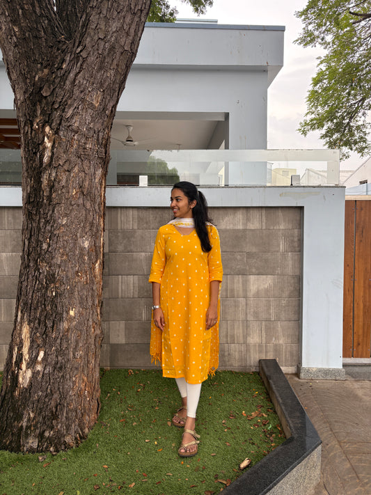 Yellow bandhini suit set