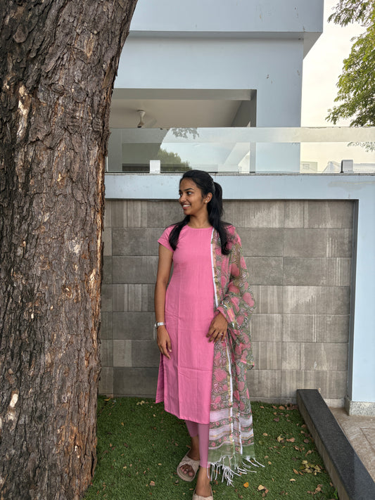 Pink slub silk kurti set