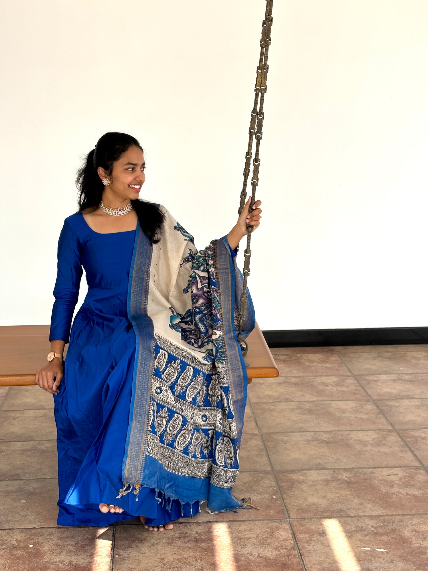 Royal blue slub silk set