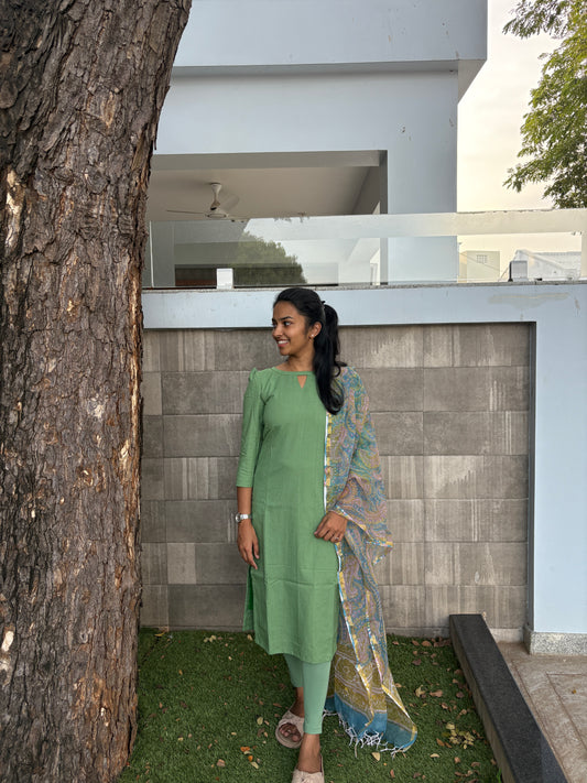 Raw silk Kurti set with Khadi duppata