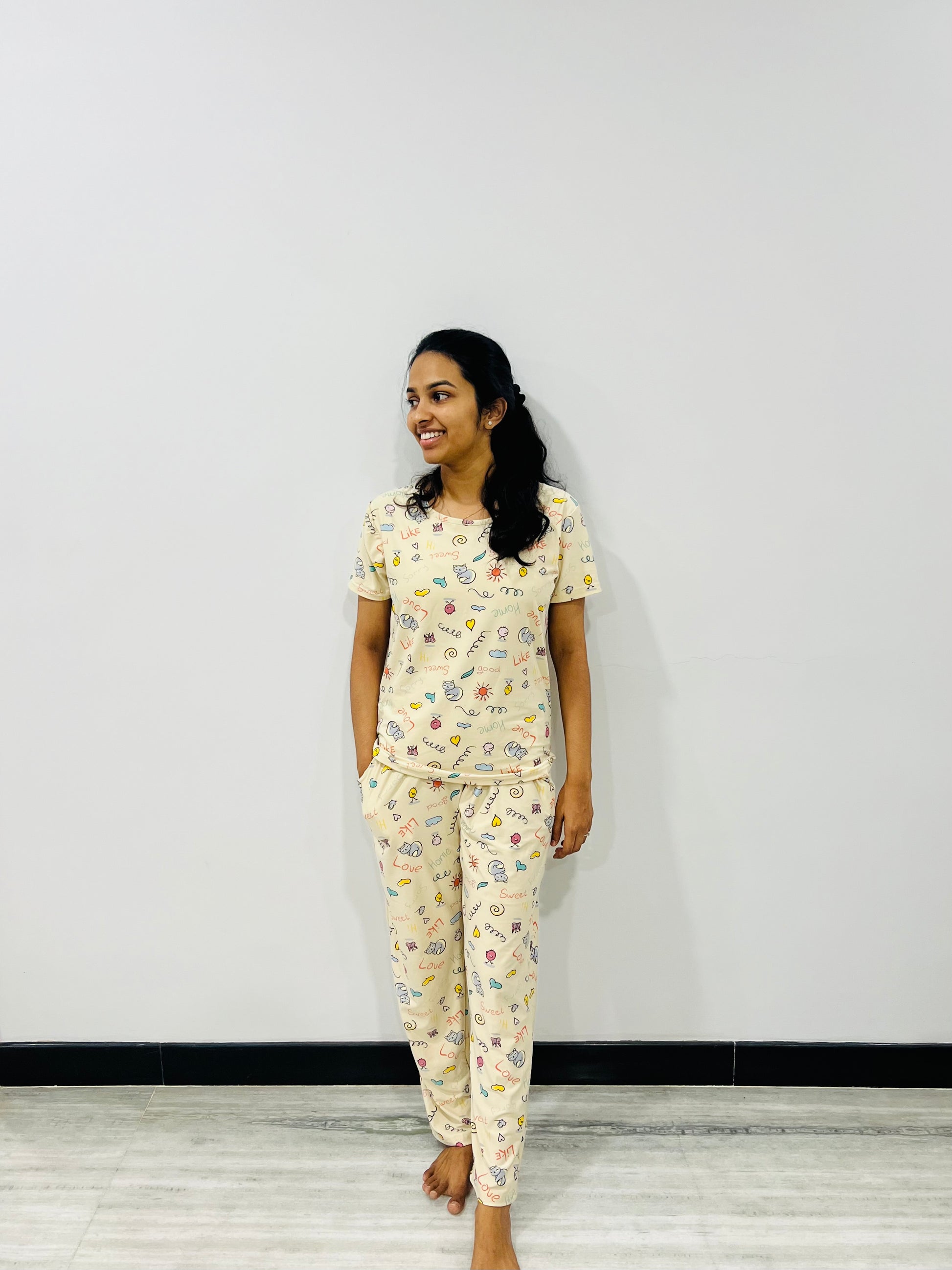 This co-ord set is made from soft and breathable fabric which will keep you comfortable all day long. To add on it has some cute prints which is quite attractive. This comfy lounge wear is a must have in your wardrobe.