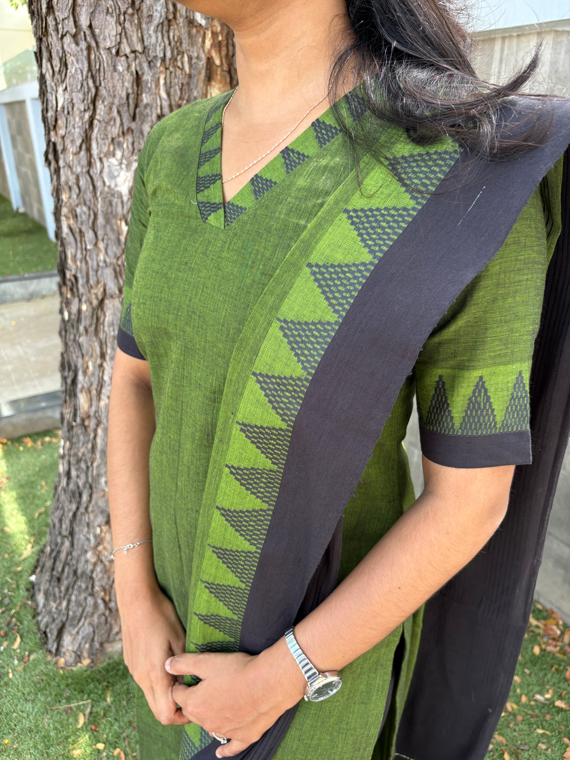 Green handloom kurti set