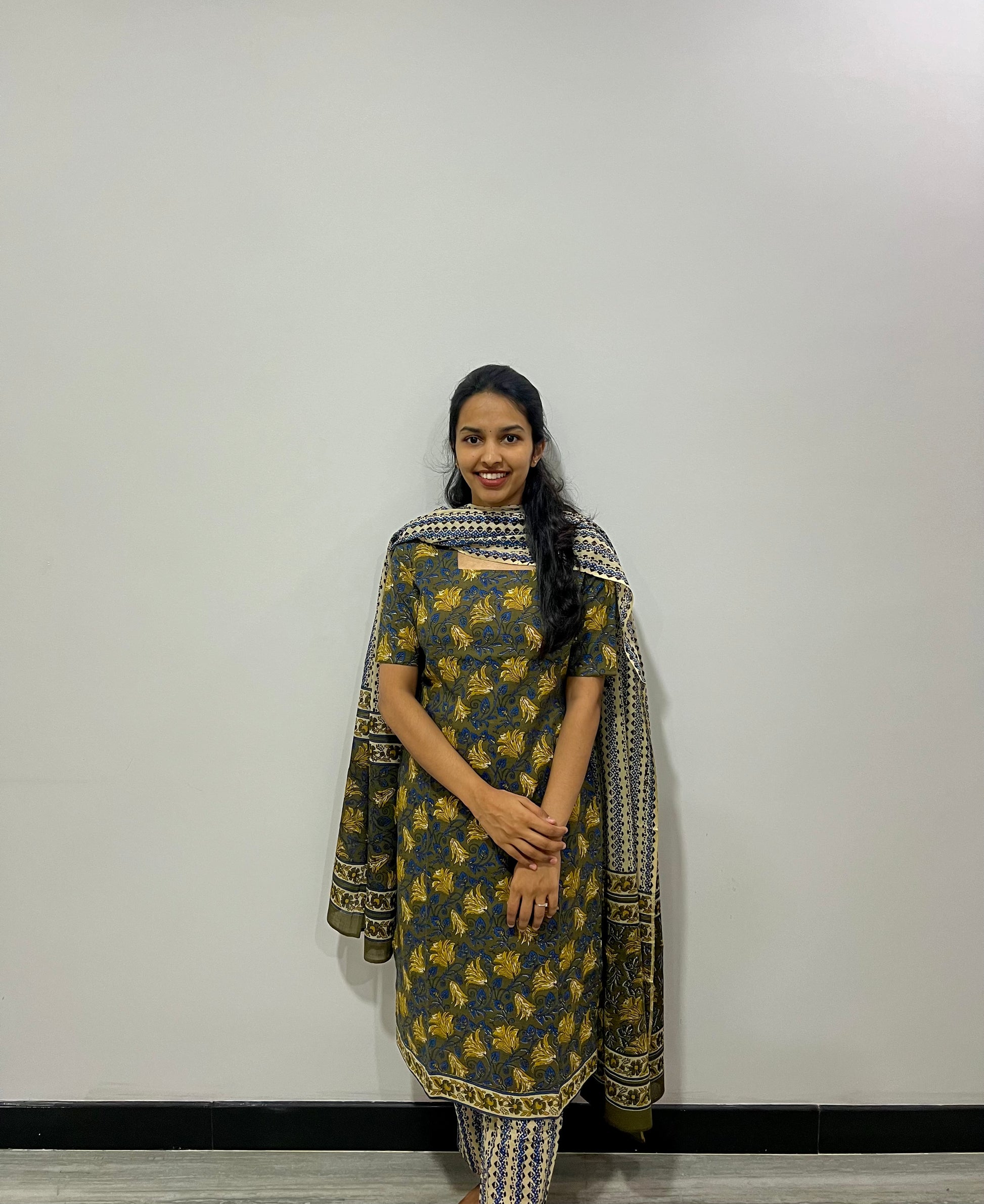 Olive green pure cotton kurti set