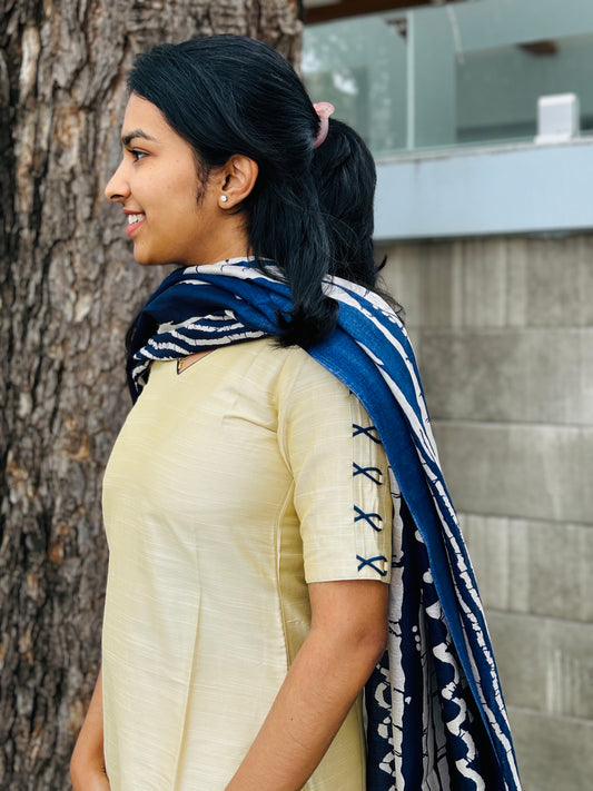 Raw silk Kurti set with Khadi duppata