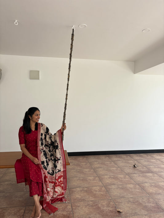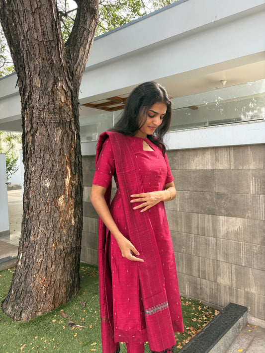 Dark red raw silk suit set