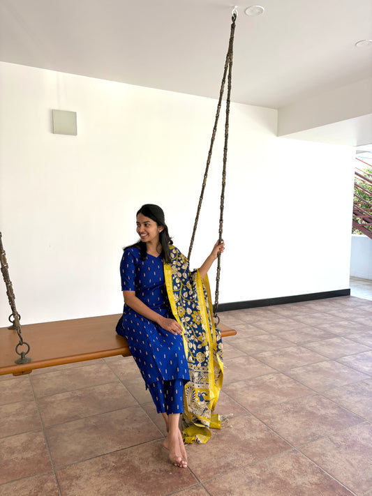 Royal blue slub silk set